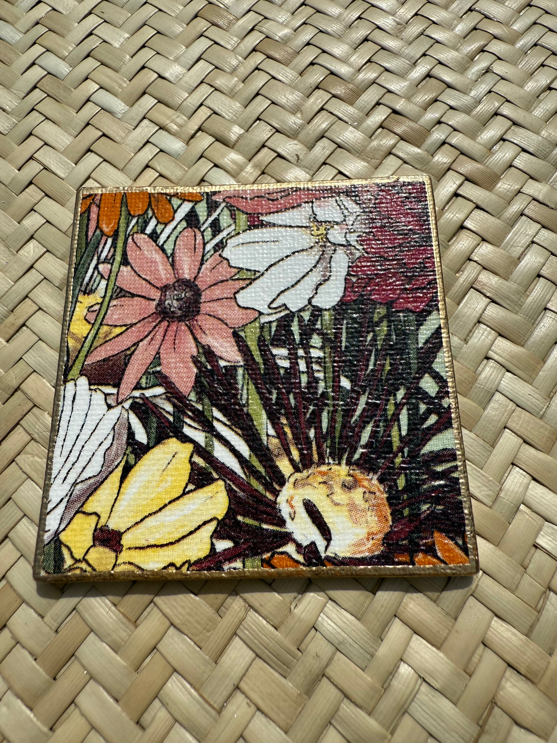 Bold Bloom Decoupage Magnets – Handcrafted Floral Set with Metallic Edges