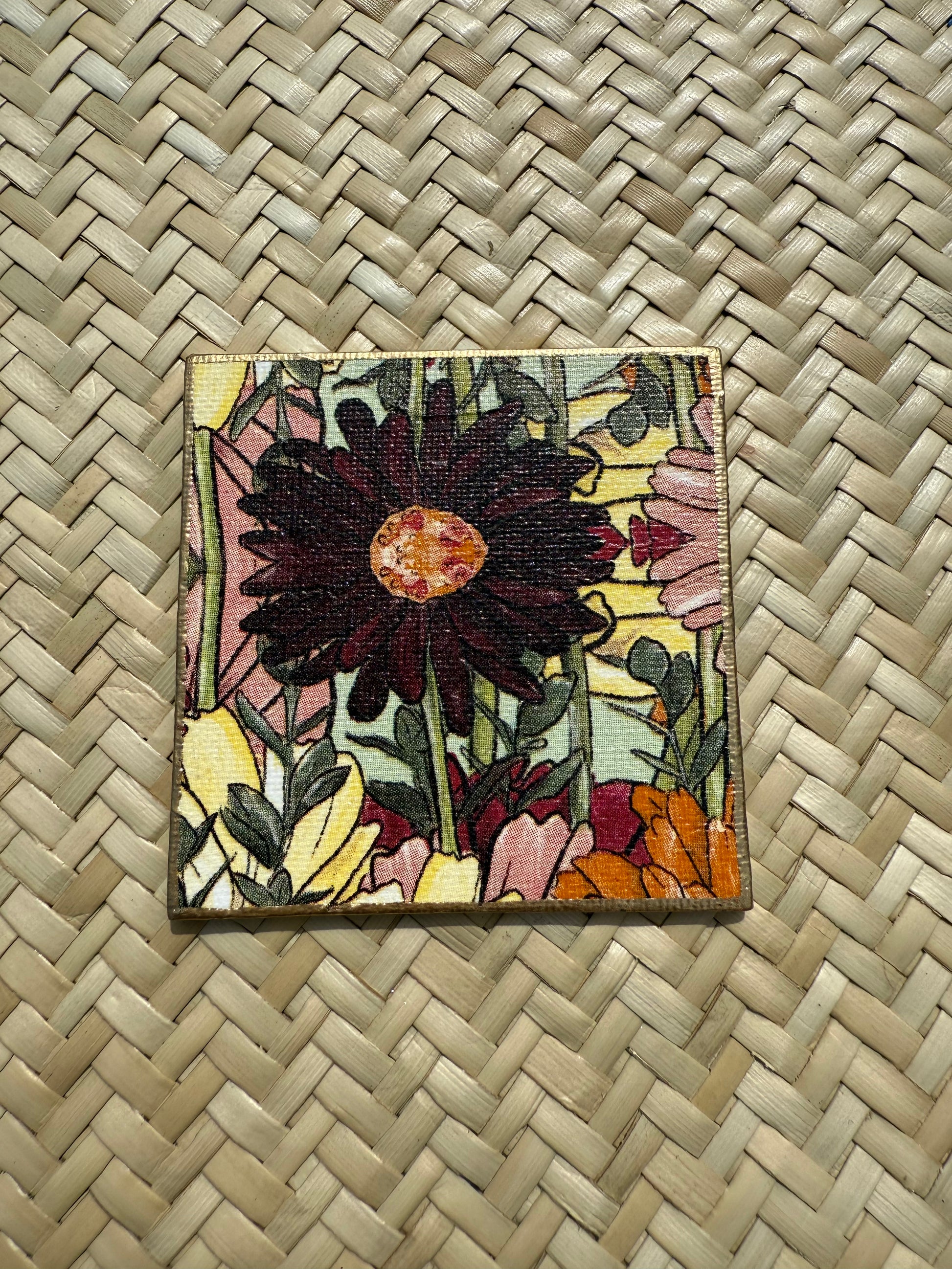 Each magnet is lovingly made using a rich, garden-inspired floral print, decoupaged by hand and sealed for a smooth, durable finish. The deep reds, sunny oranges, and soft pinks bring serious flower power to your fridge, filing cabinet, or magnetic board.