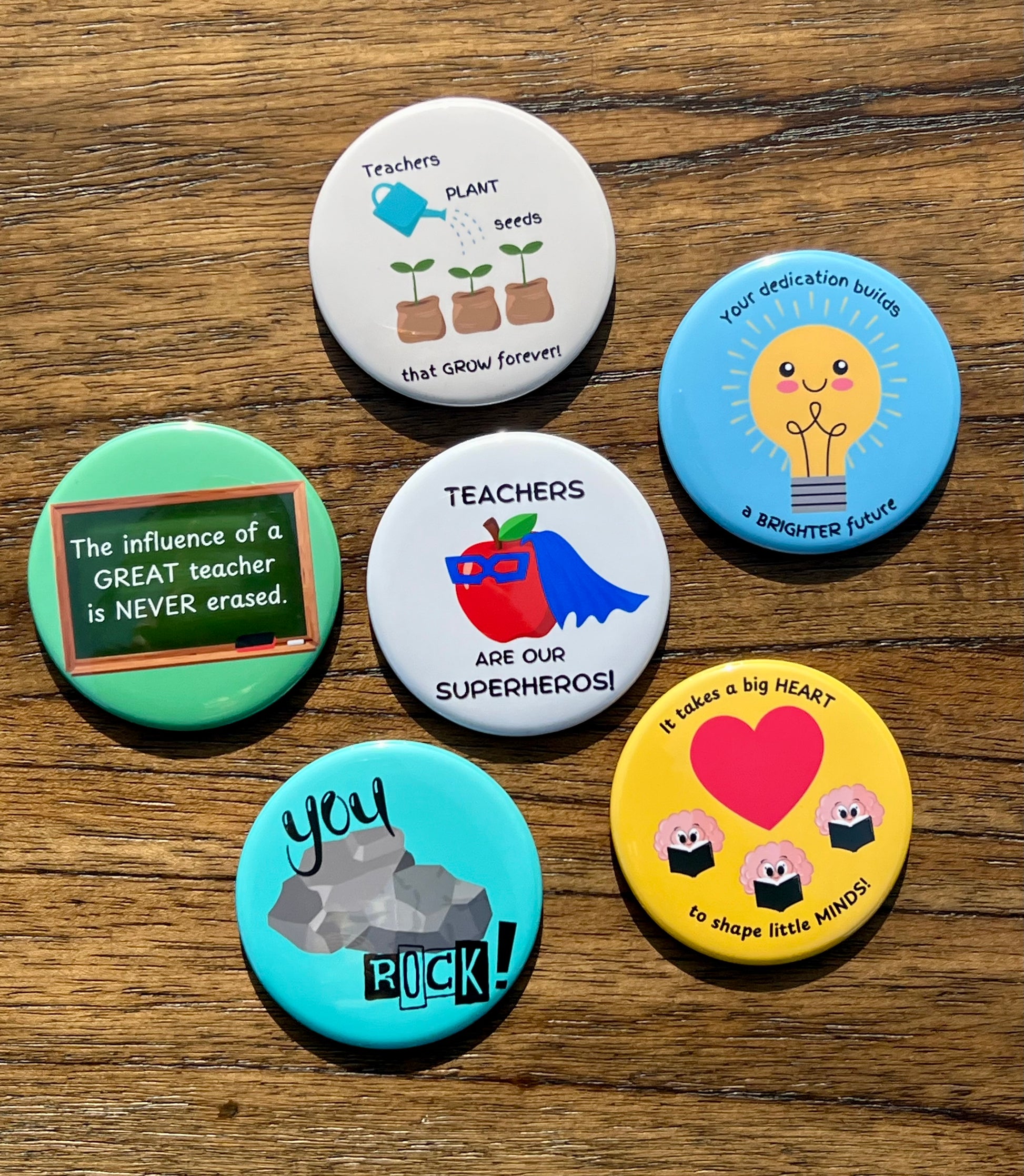 -Choose between sets of 6, 50, or 100 round 2.25 inch magnets with a variety of fun and inspirational designs