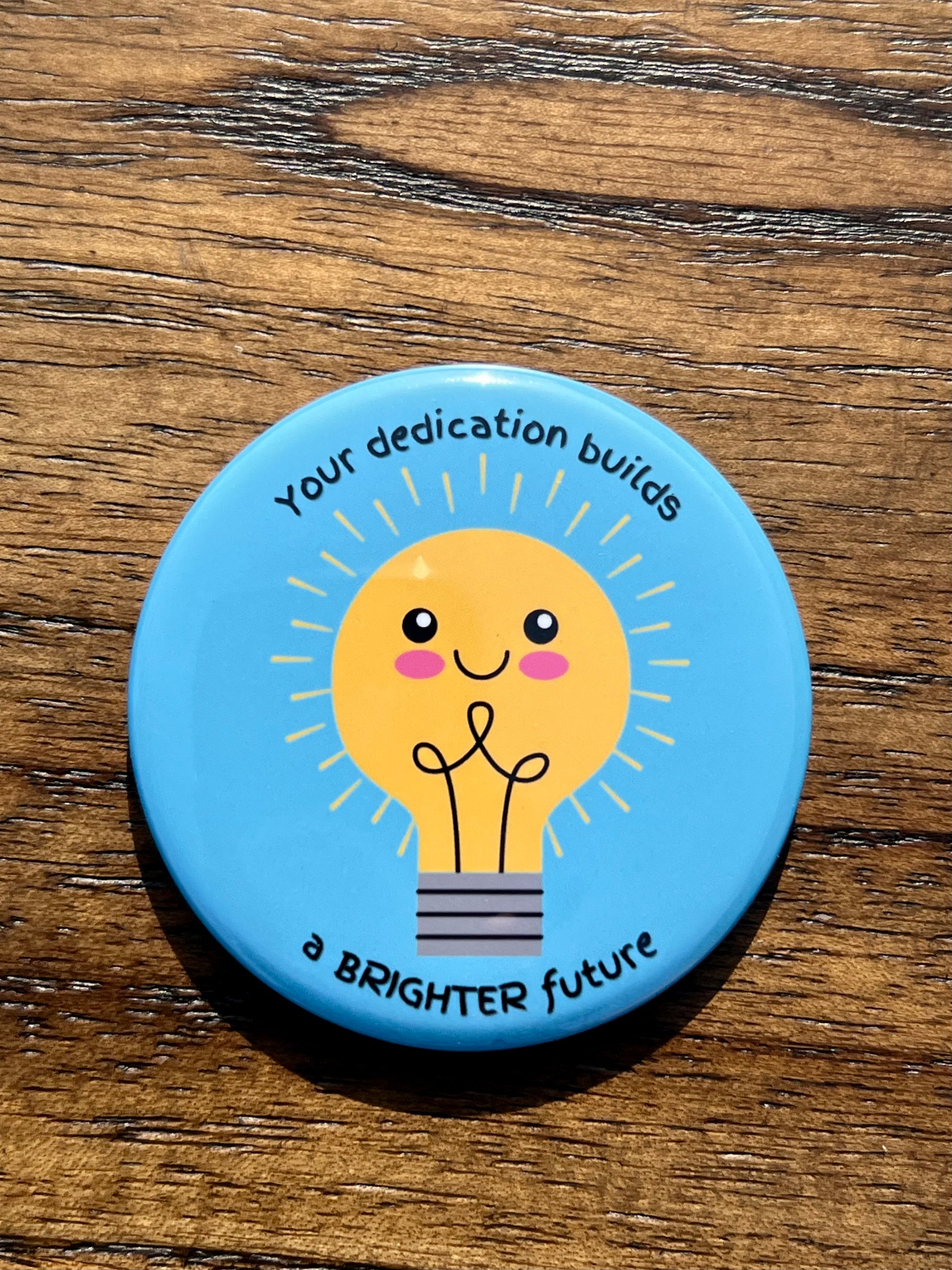 4. "Your dedication builds a BRIGHTER future" with a smiling bright yellow lightbulb.