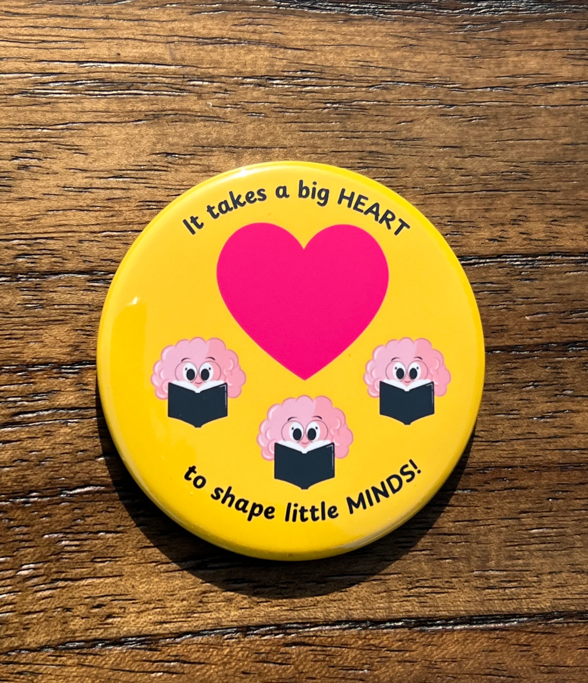 3. "It takes a big HEART to shape little MINDS!" – featuring a pink heart and brains reading books.